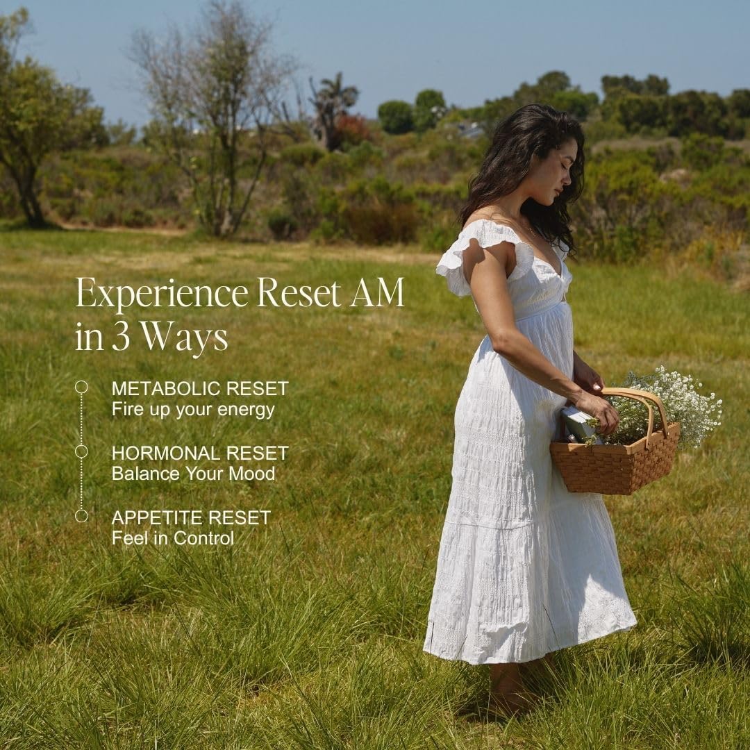 Hormonal Harmony & Appetite Regulation: Designed to work with your body’s natural rhythms, Reset AM gently supports hormonal balance, a cornerstone of feeling centered and vibrant. Our Reset blend proactively assists with appetite regulation, contributing to consistent daily vitality without complex routines.